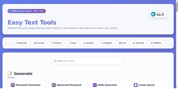 100+ free online text tools made simple. Convert text case, generate passwords, count words, encode/decode, and more. No signup required. Fast and easy to use.